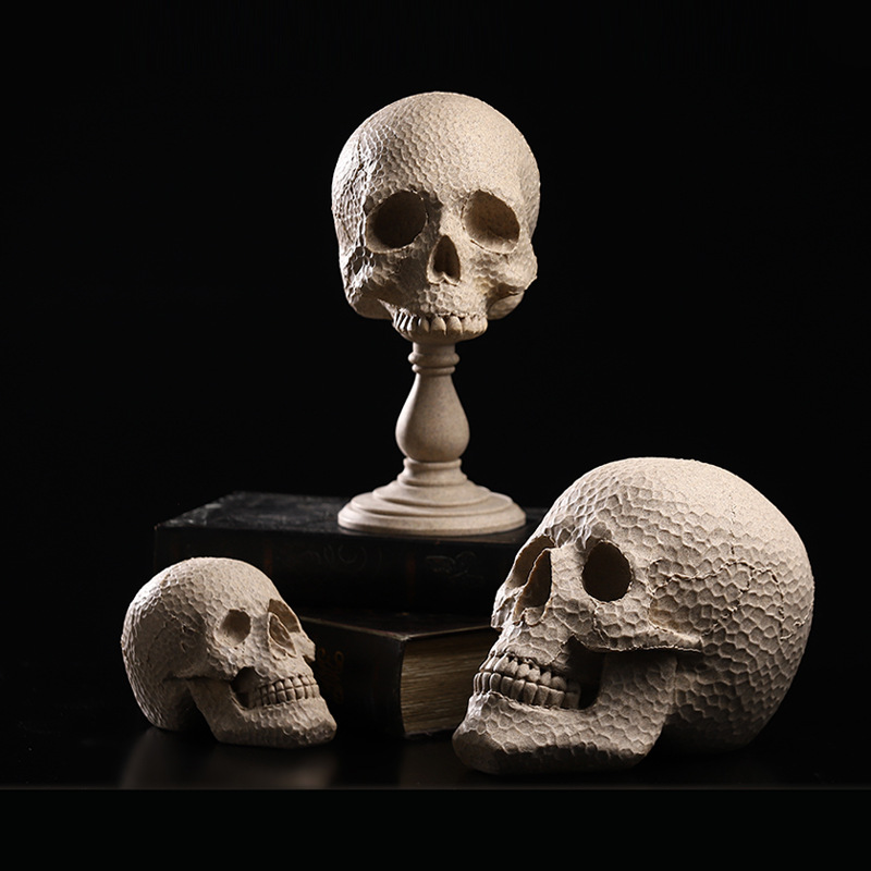 > 北欧创意人体头部模型雕塑摆件砂岩骷髅头创意桌面客厅玄关餐厅柜