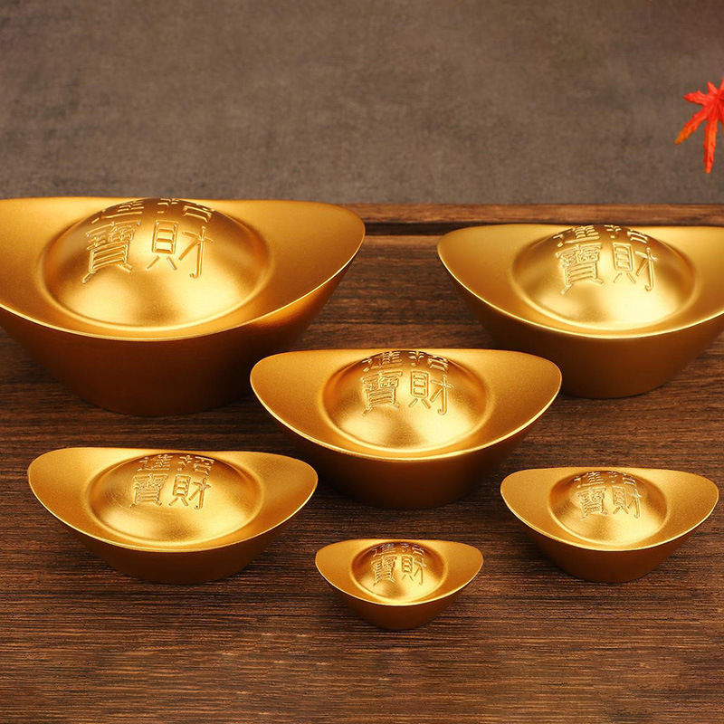 > 纯铜实心元宝摆件全铜仿真金元宝家用家居招财镇财大元宝厂家批发