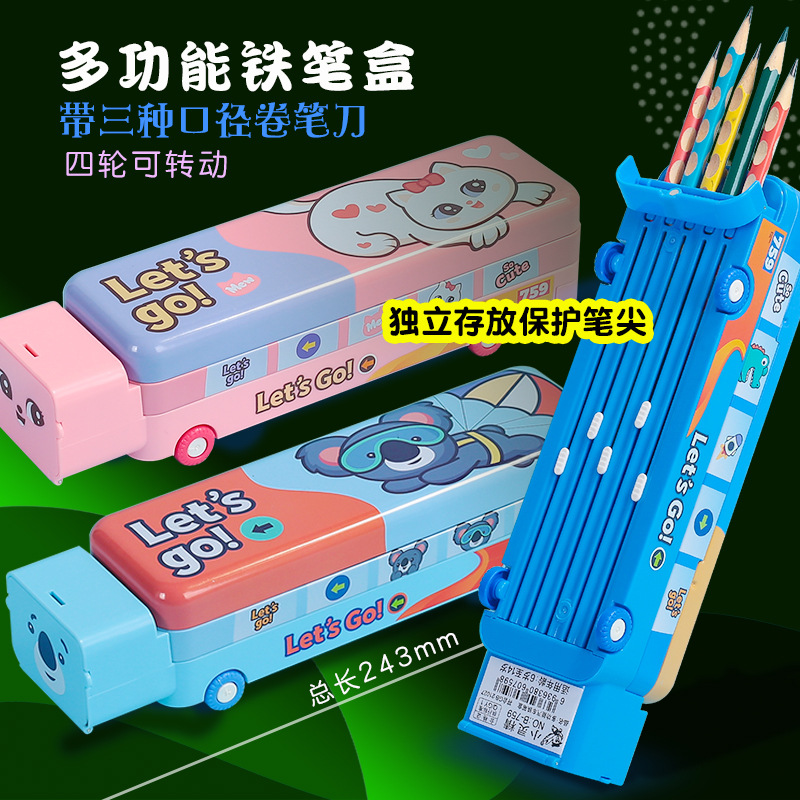 流沙新款铁笔盒小学生多功能文具盒可爱创意铅笔盒大容量批发代发