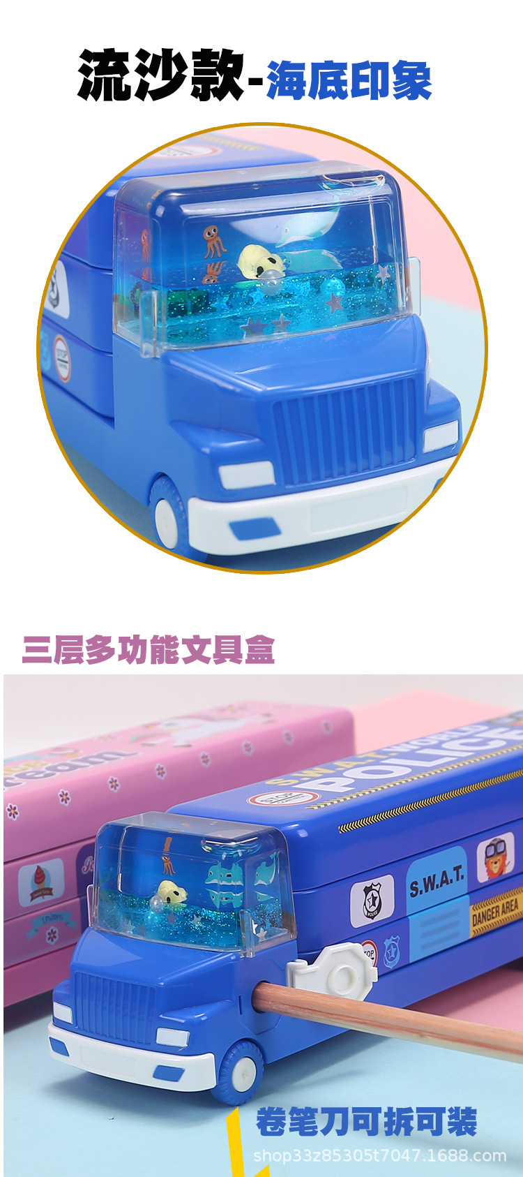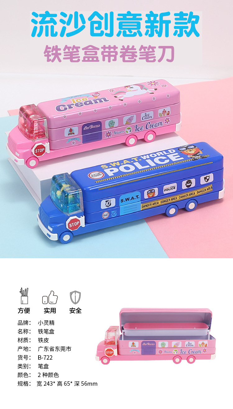 商品名称:流沙新款铁笔盒小学生多功能文具盒可爱创意铅笔盒大容量批发代发